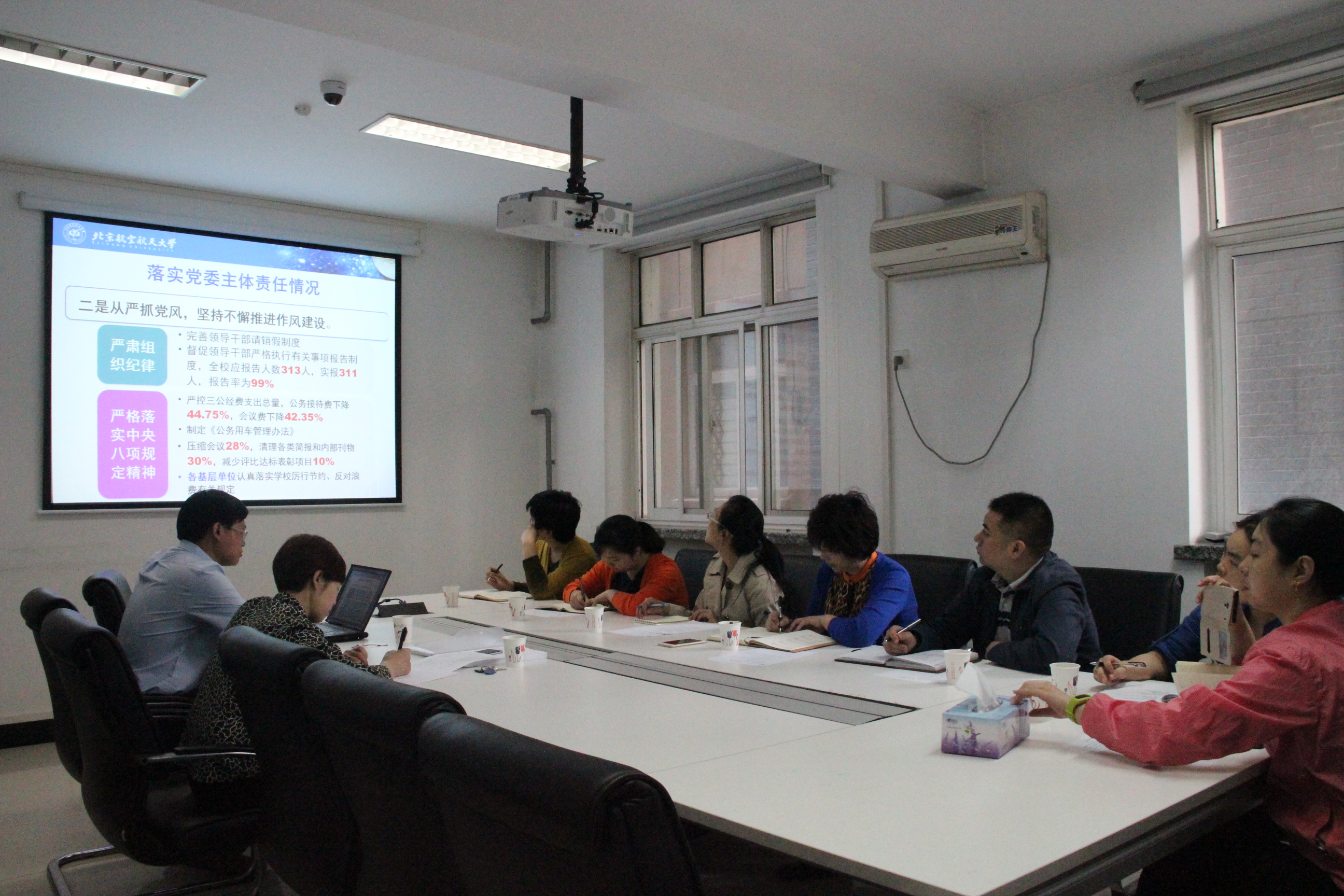 张海兰副书记对2所高校同仁的到来表示欢迎。纪委办副主任于金龙围绕调研主题介绍了我校党风廉政建设、落实"三转"、落实"两个责任"、廉政风险防控管理的情况。