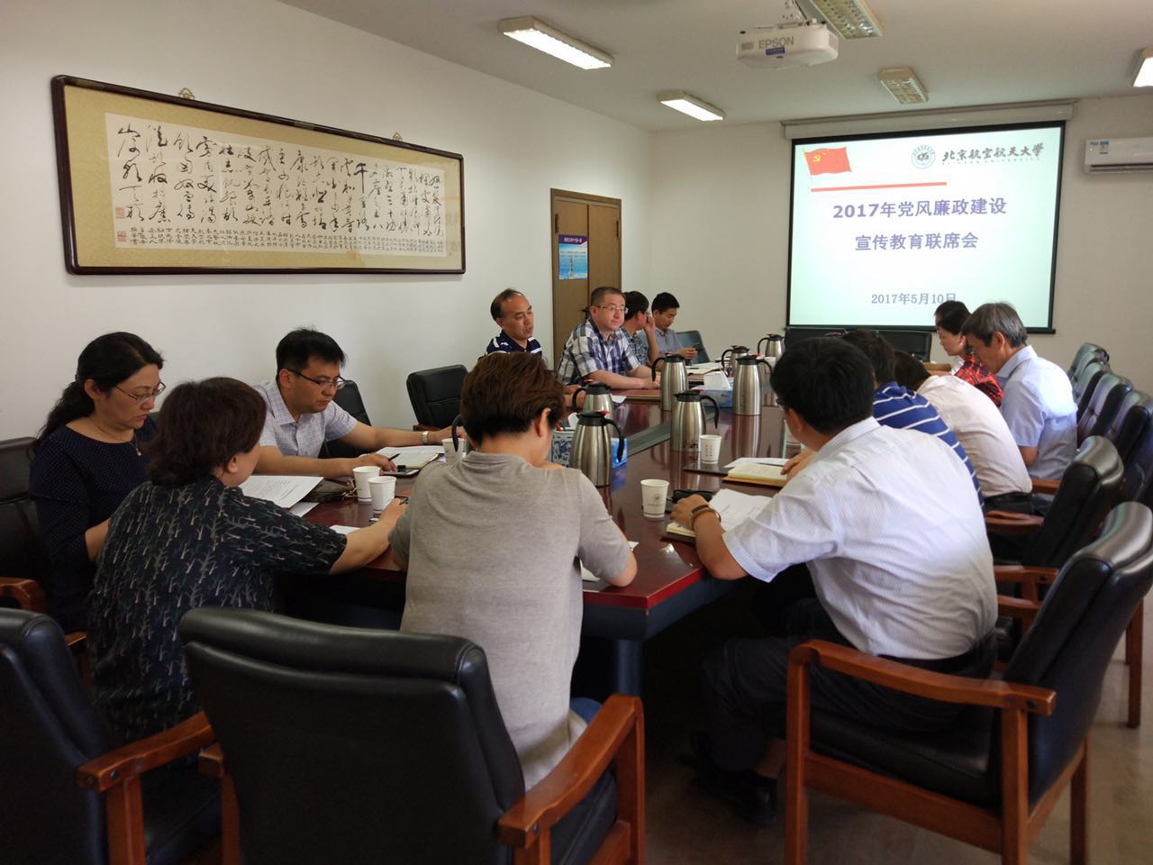 5月10日下午,校纪委书记何新洲主持召开党风廉政宣传教育联席会,研究部署2017年学校党风廉政建设宣传教育月工作,联席会成员单位纪委办公室、组织部、宣传部、人事处、校工会、校团委、学生工作部、研究生工作部、机关党委、后勤保障处(后勤党委)负责人参加了会议。