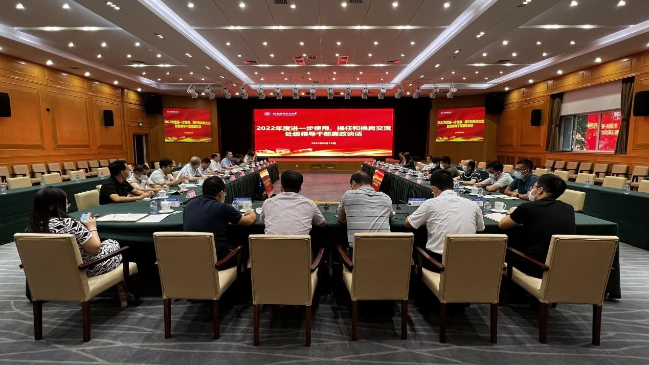 9月16日下午,党委副书记、纪委书记、监察专员何新洲以《知责尽责、遵纪守法,带头做担当尽责、清正廉洁的好干部》为题,与25名近期新提任和轮岗交流处级干部进行了集体廉政谈话。